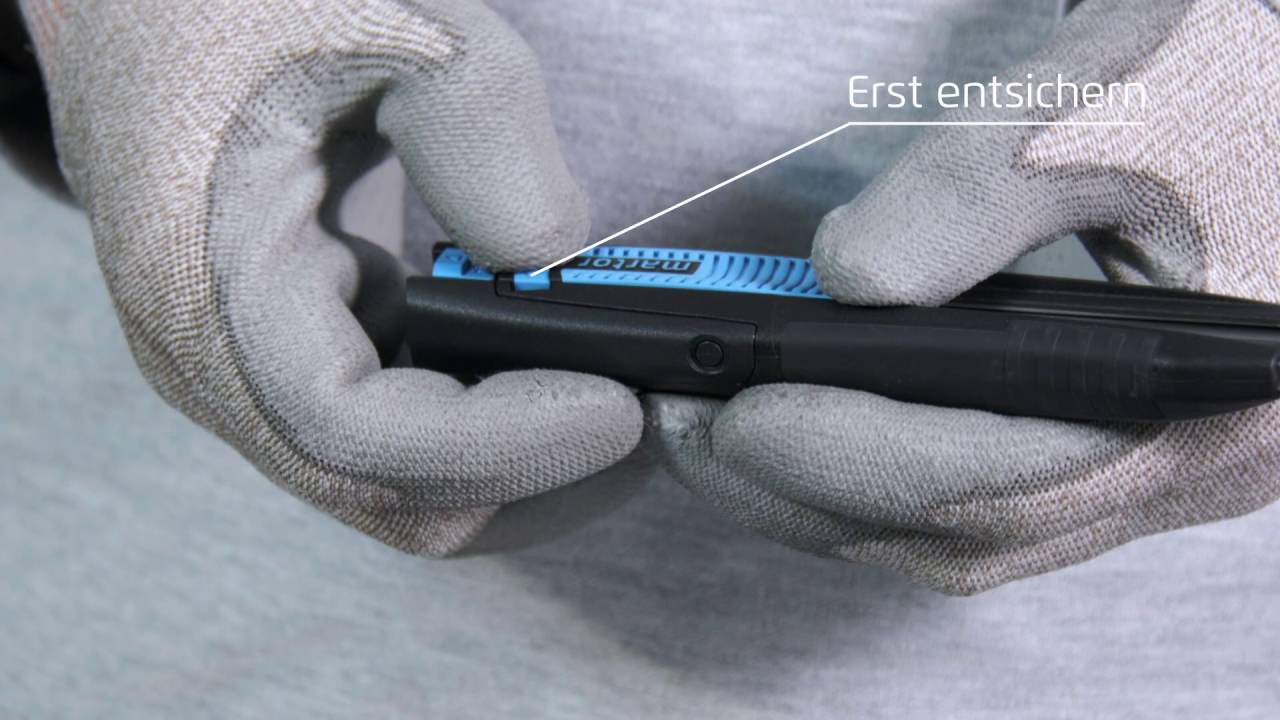 - Sobald Sie mit dem Schneiden beginnen, lassen Sie den Schieber los - so verschwindet die Klinge nach dem Schnitt sofort wieder im Griff